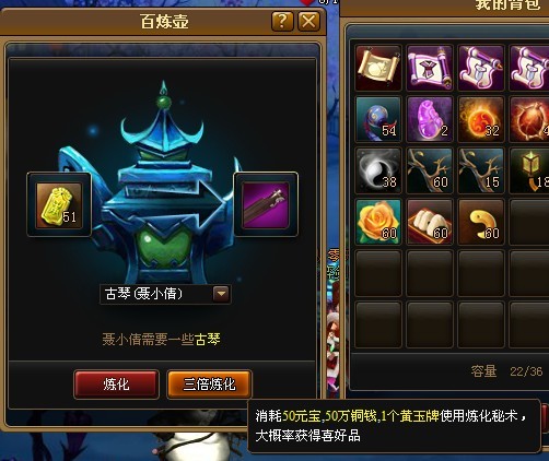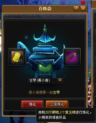 (2)三倍炼化:元宝炼化,但并不是用了元宝就不用铜币的,如图所示。只是提升了炼化成功的概率。这样的话非R小R的区别应该普遍不会太大。