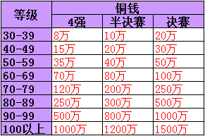 冠军:40000声望、4000W铜钱、灵石1000、境界点100(冠军礼包将有概率开出七品丹药制作卷)冠军队伍制服。
